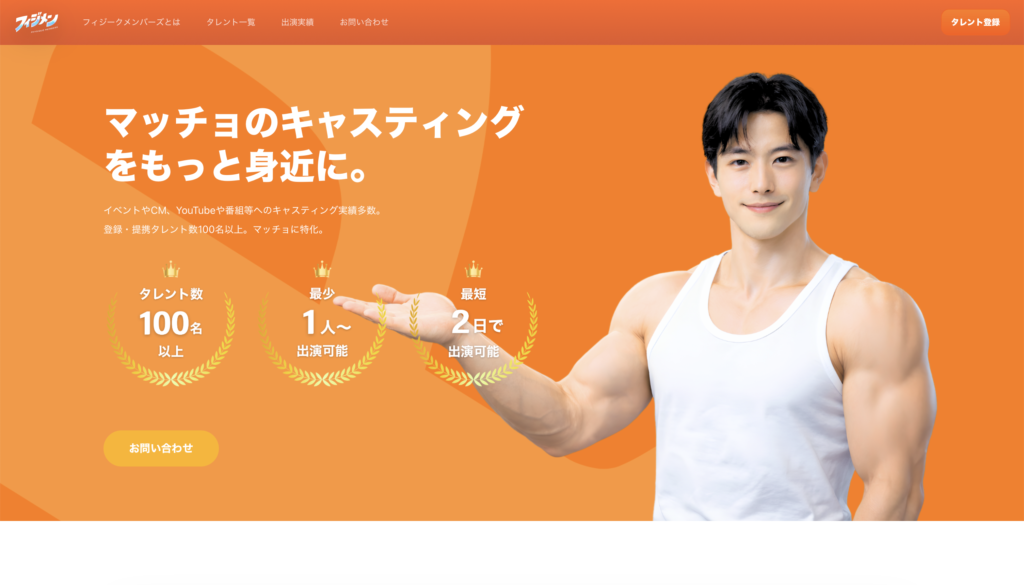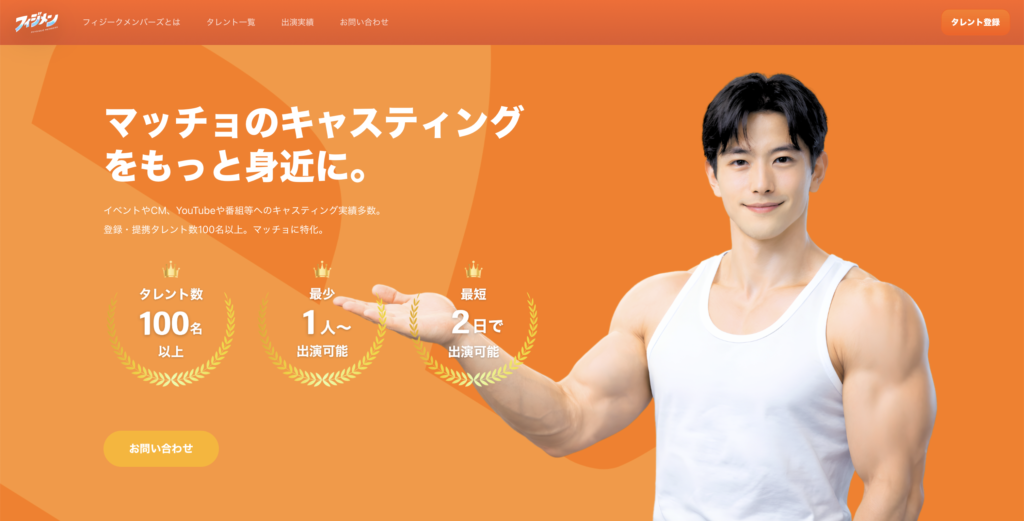 はじめにおすすめするのは、ボディビルダーやフィジーク選手、マッチョモデルが多数所属しているフィジメン。