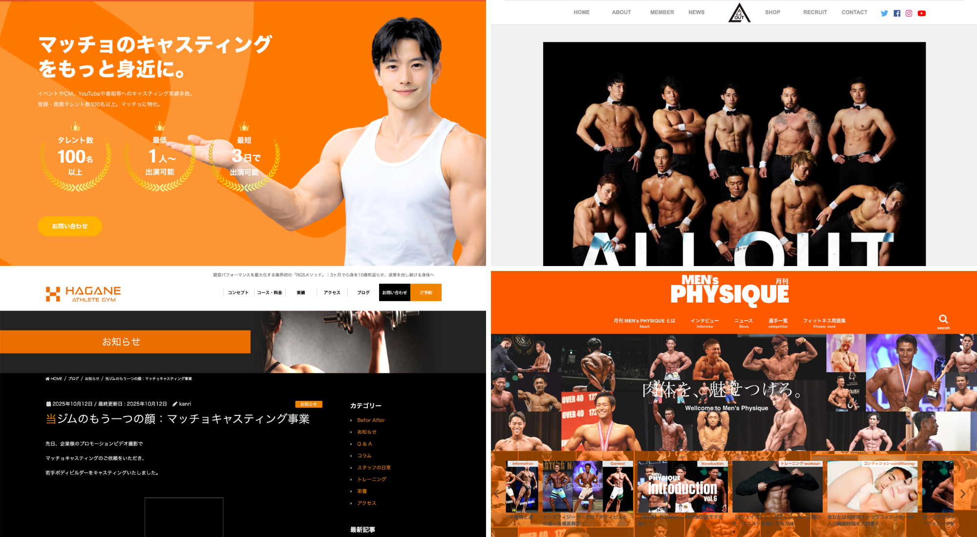 2番目に紹介するのは、全国でマッチョをキャスティングしている「ALLOUT」です。
